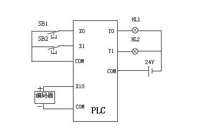 常用的旋轉編碼器有5條引線,其中3條是脈沖輸出線,1條是COM端線,1條是電源線(OC門輸出型)。電源可以是外接電源,也可直接使用PLC的電源。電源“-”端要與編碼器的COM端連接,“+ ”與編碼器的電源端連接。編碼器的COM端與PLC輸入COM端連接,A、B、Z兩相脈沖輸出線直接與PLC的輸入端連接,A、B為相差90度的脈沖。旋轉編碼器還有一條屏蔽線,使用時要將屏蔽線接地,提高抗干擾性。